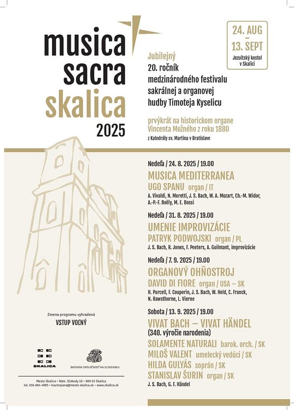 V piatok si môžete oddýchnuť na Skalických rybníkoch s kapelou Fabi Band a rybími špecialitami, alebo sa rozlúčiť s letom na poriadnej tanečnej párty Goodbye Summer v Euphoria Garden na Baťáku. V sobotu sa môžete tešiť na koncerty kapiel Andersons a Velká svačina v Hospode u Čambalu, alebo si užiť minifestival vo Františkánskej záhrade s kapelami Take It Easy, Sanchez Amsterdam a NOCADEŇ. V nedeľu poteší deti rozprávka Alenka a záhorácka krajina zázrakov, dospelí si prídu na svoje na otváracom koncerte festivalu Musica Sacra Skalica v jezuitskom kostole. Pokračuje Leto u skalických vinárov a počas víkendu budú otvorené aj vybrané skalické pamiatky.